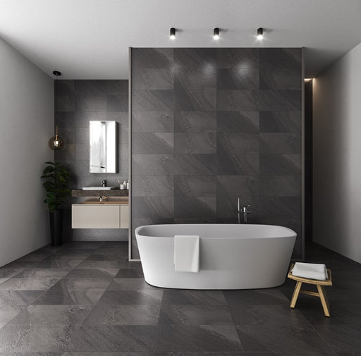 £24.99| /Sevilla Black Matt Stone Effect Wall and Floor Tile - 30x60cm and 60x60cm