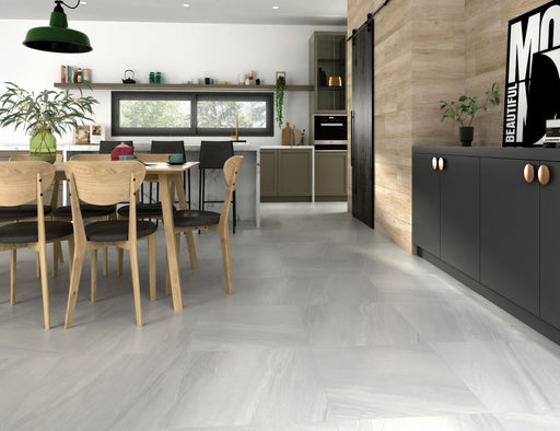 The subtle patterning within the light grey polished background gives the Viena porcelain wall and floor tile a distinctive classy appeal and makes...