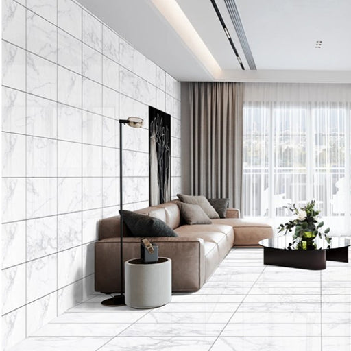 Transform your space with the Cloud Carrara Marble Effect Tile, a stunning collection that combines timeless marble elegance with modern design. Av...