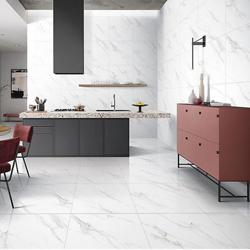 Realistic veining replicating the look of genuine marble, our Calacatta Marble Effect Polished tiles enable you to achieve the look of luxury in yo...