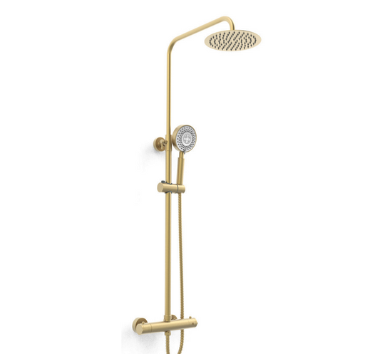 £219.99| /Brushed Brass Exposed Thermostatic Shower with Slim Overhead