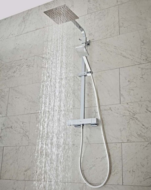 Modern and contemporary, this chrome thermostatic Exposed Shower set comes complete with a dual function shower system containing a square shower o...