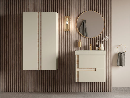 from £424.99| /Couture Matt Cotton/Oak Effect Wall Hung Vanity - 615mm/815mm with Optional Tall Unit