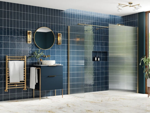 from £239.99| /Roma 8 Brushed Brass Fluted Glass Wetroom Panel with Optional Side Panel